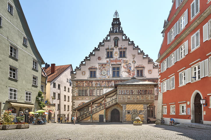 Wenn du zur vollen Stunde in der Nähe des Bismarckplatzes bist, halte inne und lausche dem Lindauer Glockenspiel. Es befindet sich in der Gaube an der Fassade des Neuen Rathauses.